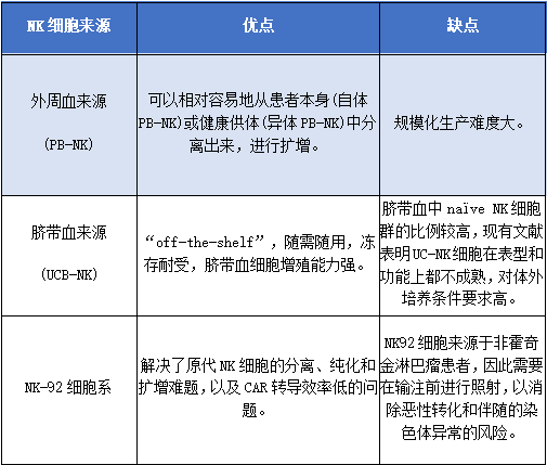 (表1 不同来源的NK细胞对比)